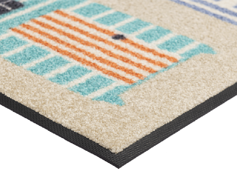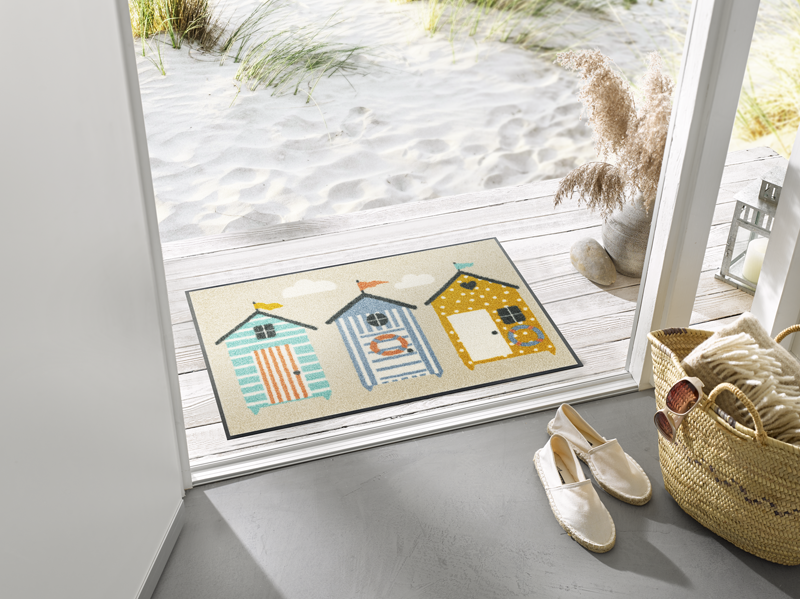 שטיח כניסה בעיצוב קיצי ומרענן בהשראת חופי הים והנוף הקסום של בקתות החוף.