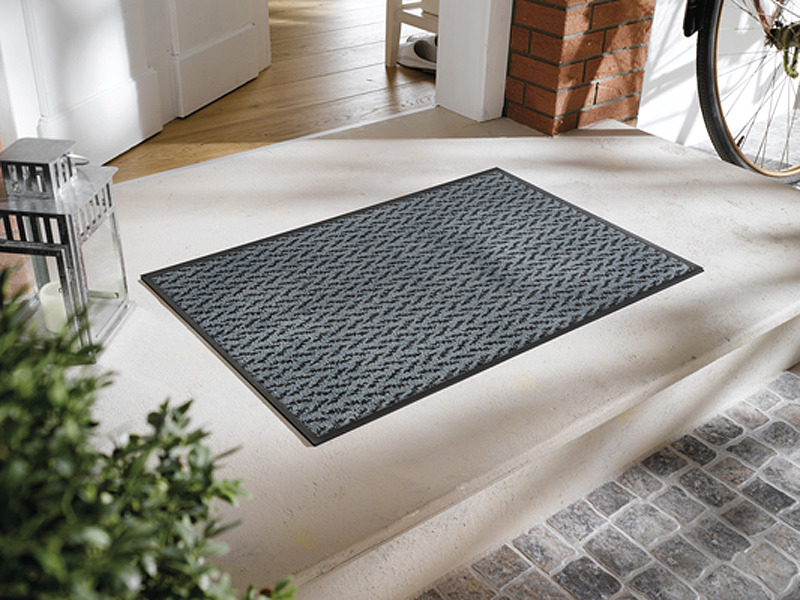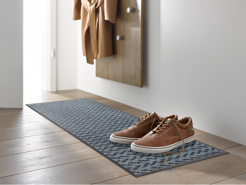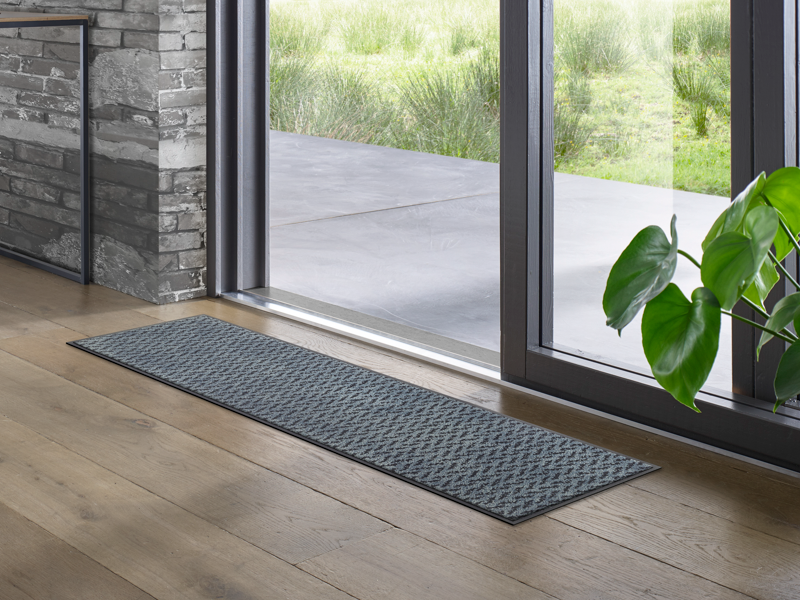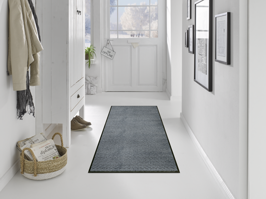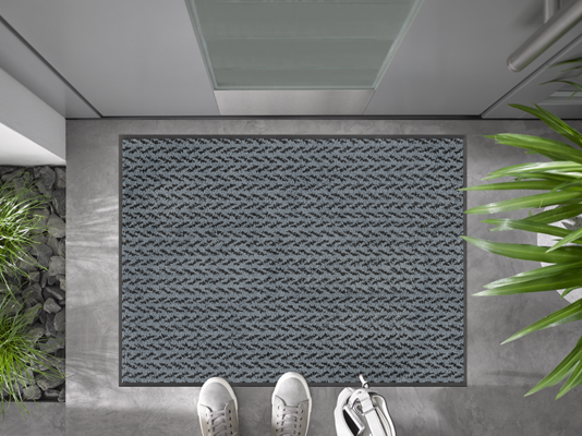 שטיח כניסה מודרני בגוון ג'ינס כחול כהה, שמכניס לבית סטייל צעיר, רענן ואופנתי.