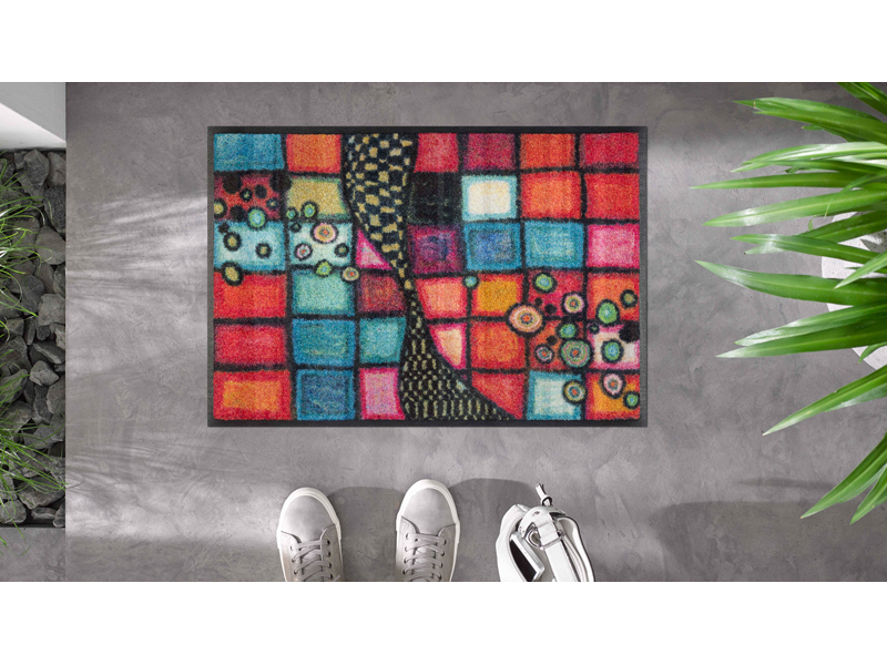 שטיח כניסה ייחודי בעיצוב טיגריס עוצמתי על רקע טבע פראי בסגנון טונדרה, שמוסיף לבית מראה דרמטי, מודרני ומלא אופי.