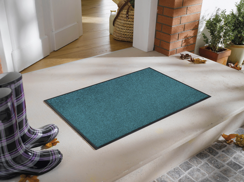 שטיח כניסה בעיצוב עז ובגוון ירוק טווס, שמוסיף לחלל תחושת עושר, טבע ויוקרה. מושלם לעיצוב מודרני, חמים וייחודי.