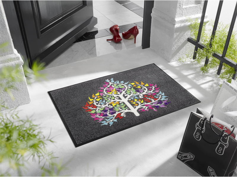 שטיח כניסה בעיצוב טבעי וחמים עם דוגמת עץ ולב, המסמל אהבה, צמיחה והרמוניה. מוסיף לבית תחושת שלווה, טבע וחום כפרי אמיתי.