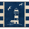 שטיח כניסה בעיצוב ימי קלאסי עם דוגמת מגדלור צבעונית שמכניסה הביתה תחושת רוגע, הרפתקה וניחוח של חוף ים. מושלם לעיצוב מודרני, קיץי או כפרי.