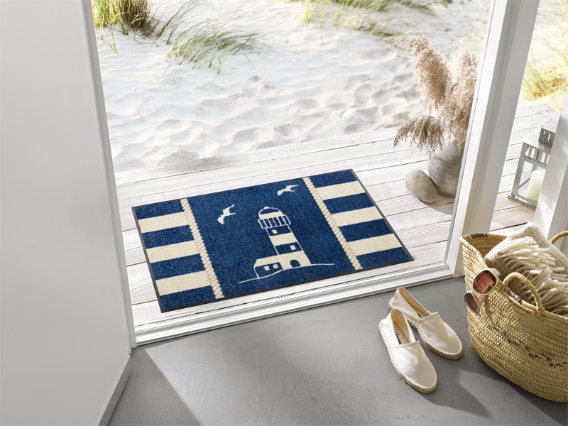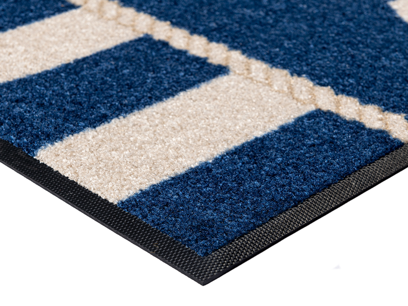 שטיח כניסה בעיצוב רגוע ואלגנטי בהשראת צבעי הים והשמים, שמכניס לבית תחושת שלווה, רעננות וחופש. מושלם לעיצוב מודרני או קיצי שמחפש טאץ’ טבעי ונקי.