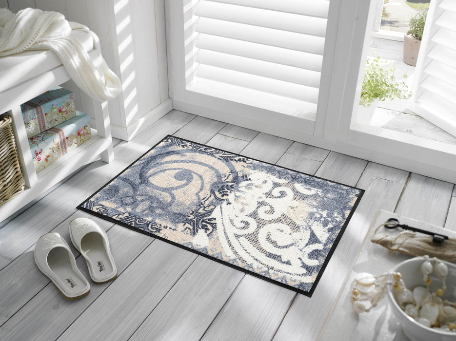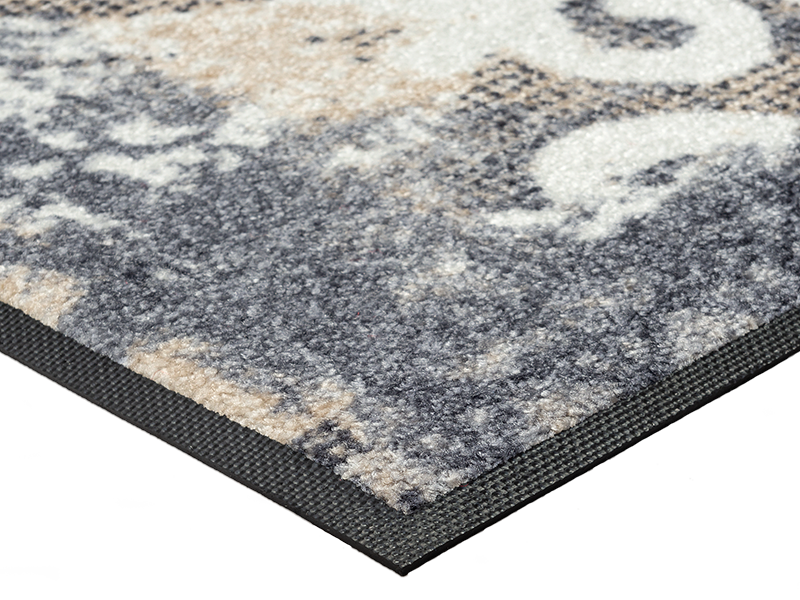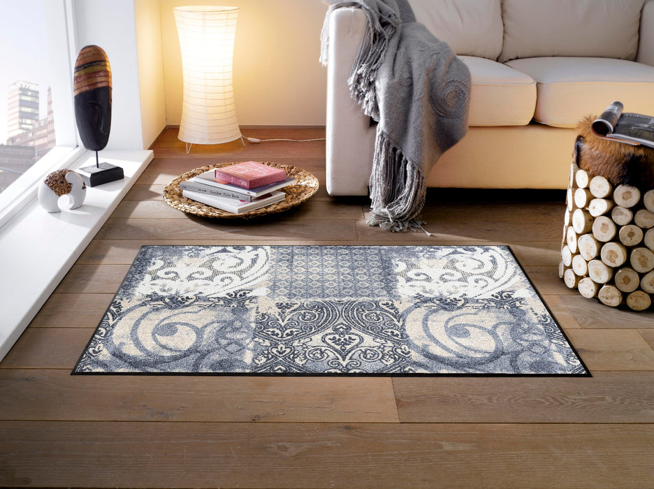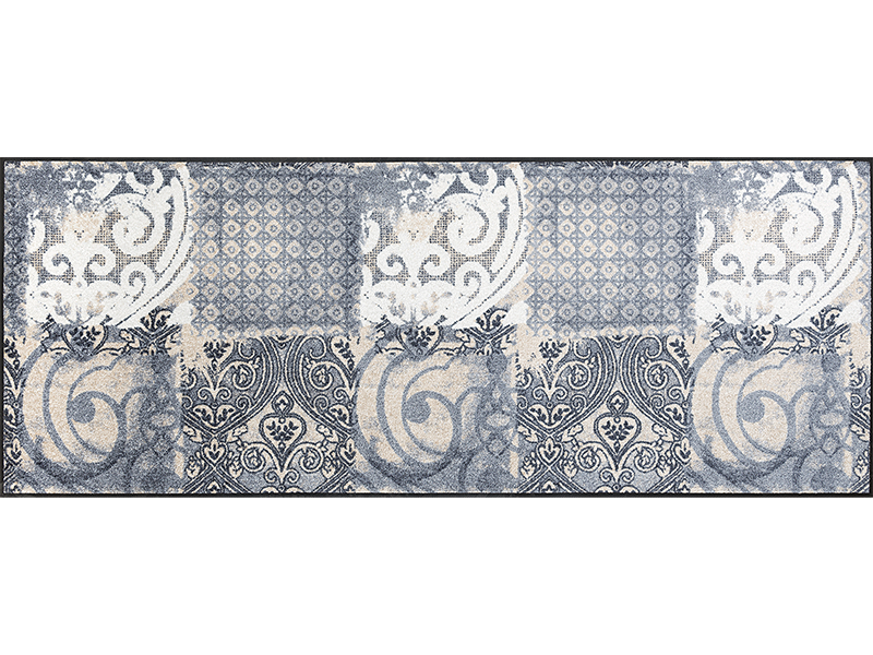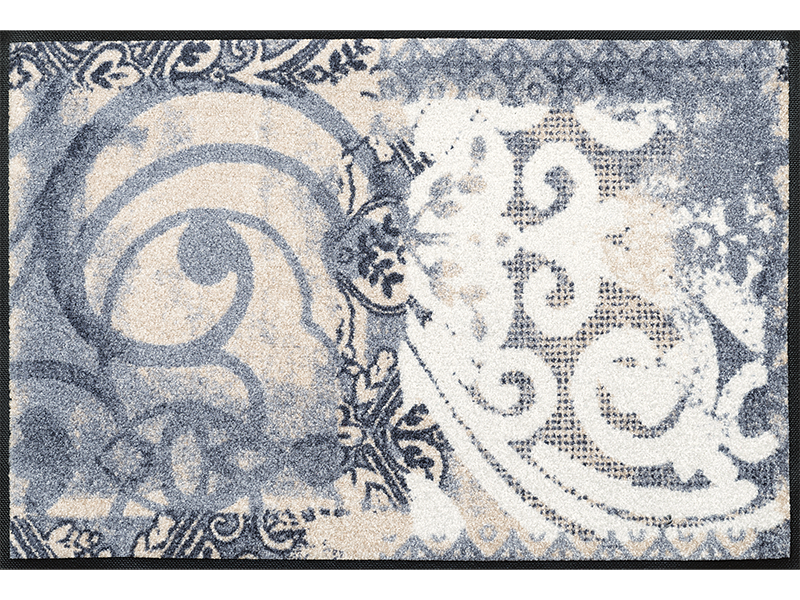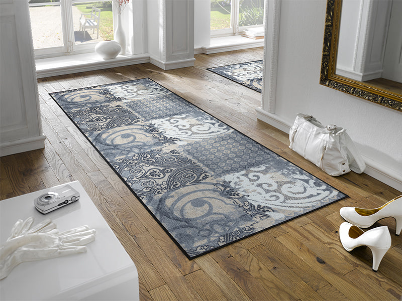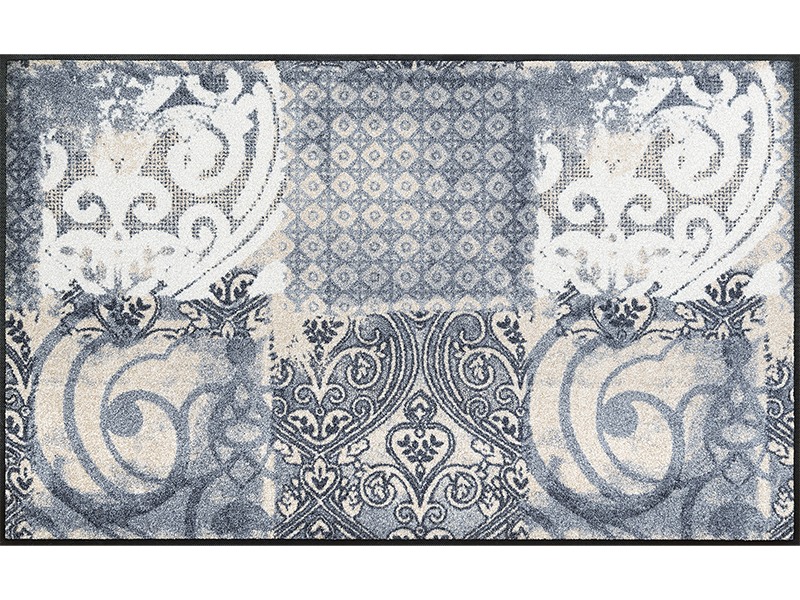שטיח כניסה אלגנטי בהשראת עיטורי ערבסקה קלאסיים, המשלבים דוגמאות גאומטריות ואלמנטים עדינים בעיצוב יוקרתי ומאוזן.