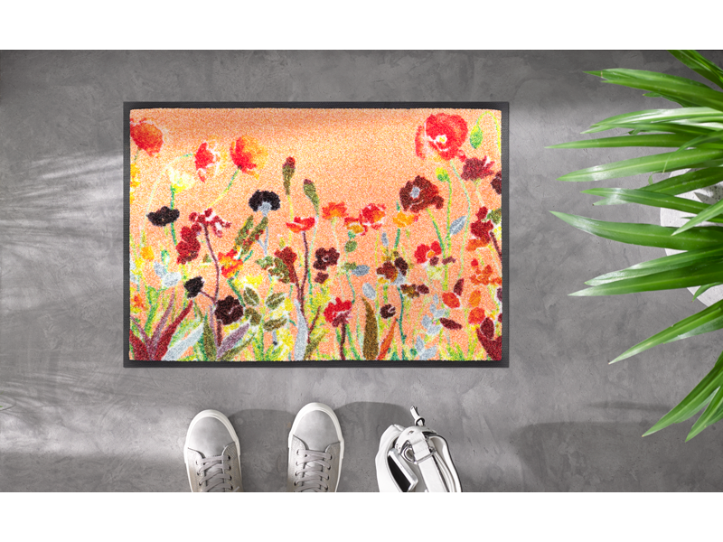 טיח כניסה קסום בעיצוב טבעי עם פרחי בר צבעוניים שמכניסים הביתה רעננות, אור וחמימות טבעית. מושלם לעיצוב ביתי רגוע, טבעי ומלא חיים.