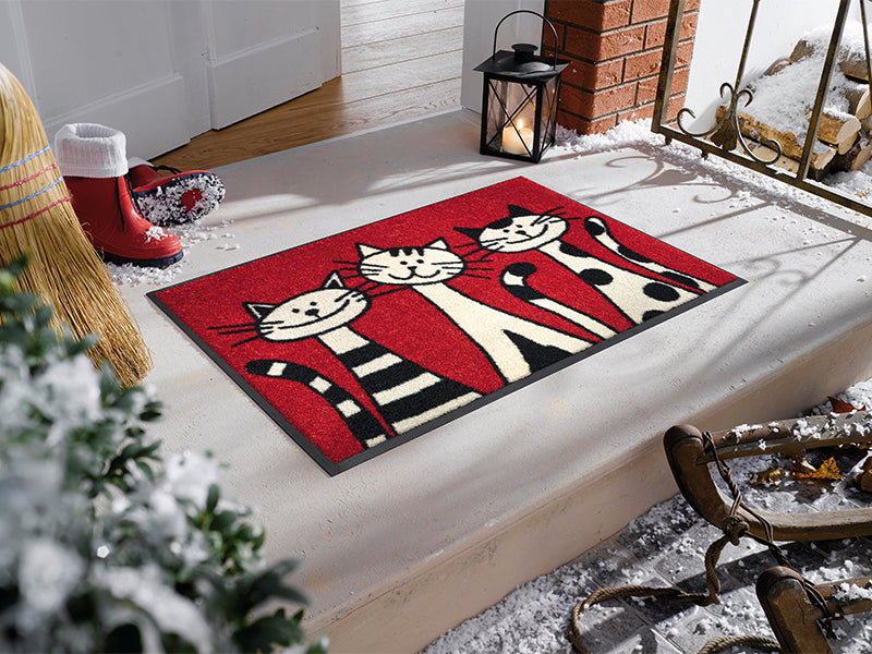 שטיח כניסה מקסים בעיצוב של שלושה חתולים שובבים שמכניסים לבית תחושת חמימות, הומור ואווירה ביתית נעימה. מושלם לאוהבי חתולים ולעיצוב ביתי מלא חיים ואופי.